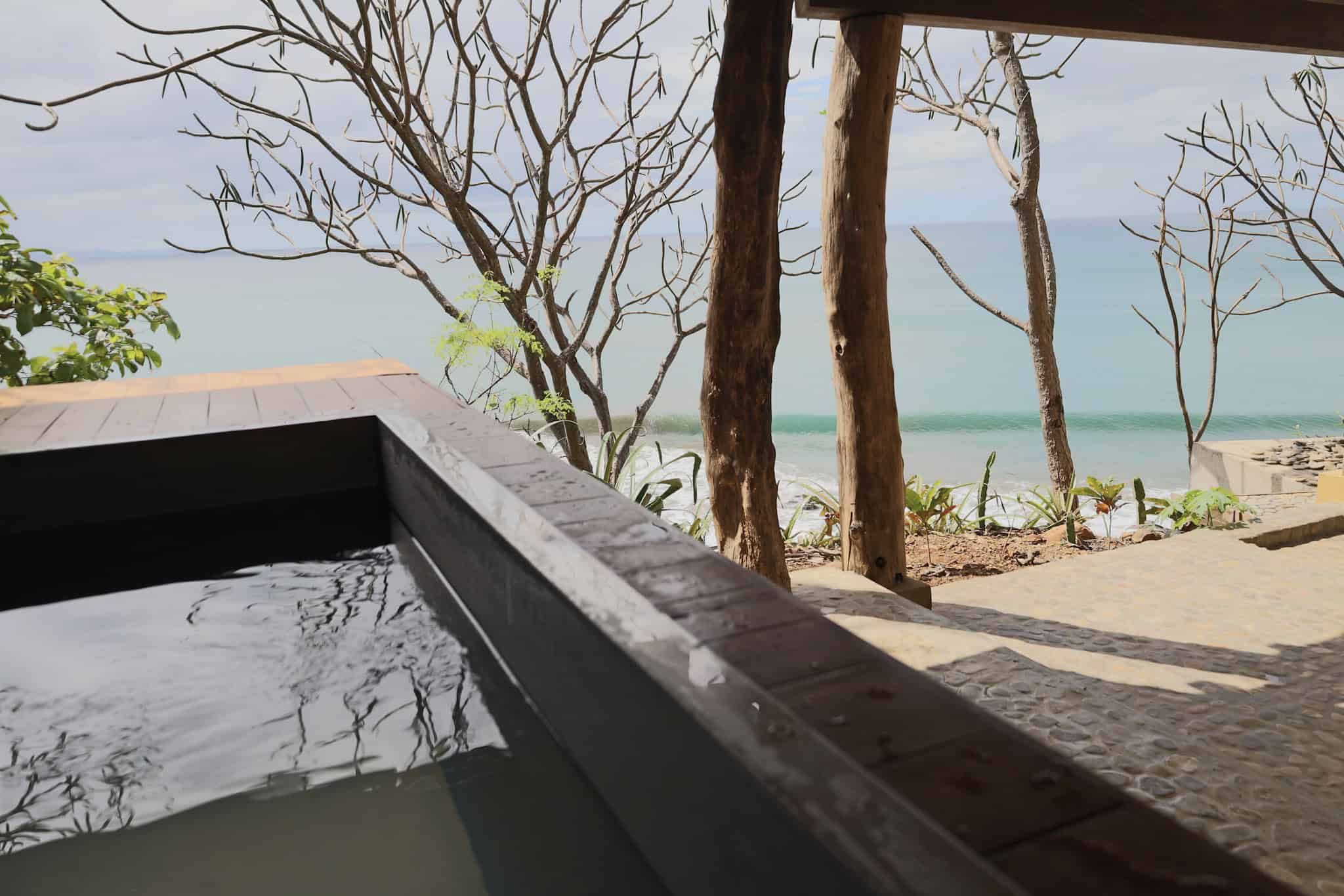 Perched atop the cliffs overlooking the ocean, beach and Costa Rica skyline, our Cold Plunge & Sauna have some of the nicest views Costa Dulce (and Nicaragua) have to offer! As the cold water awakens your nervous system, you can relax to the scenic views and sound of waves crashing below.