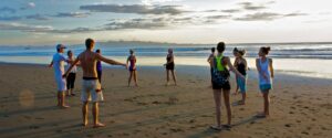 acroyoga on the beach playa escameca, nicaragua - surf and yoga retreats