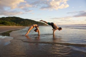 acroyoga on the beach playa escameca, nicaragua - surf and yoga retreats