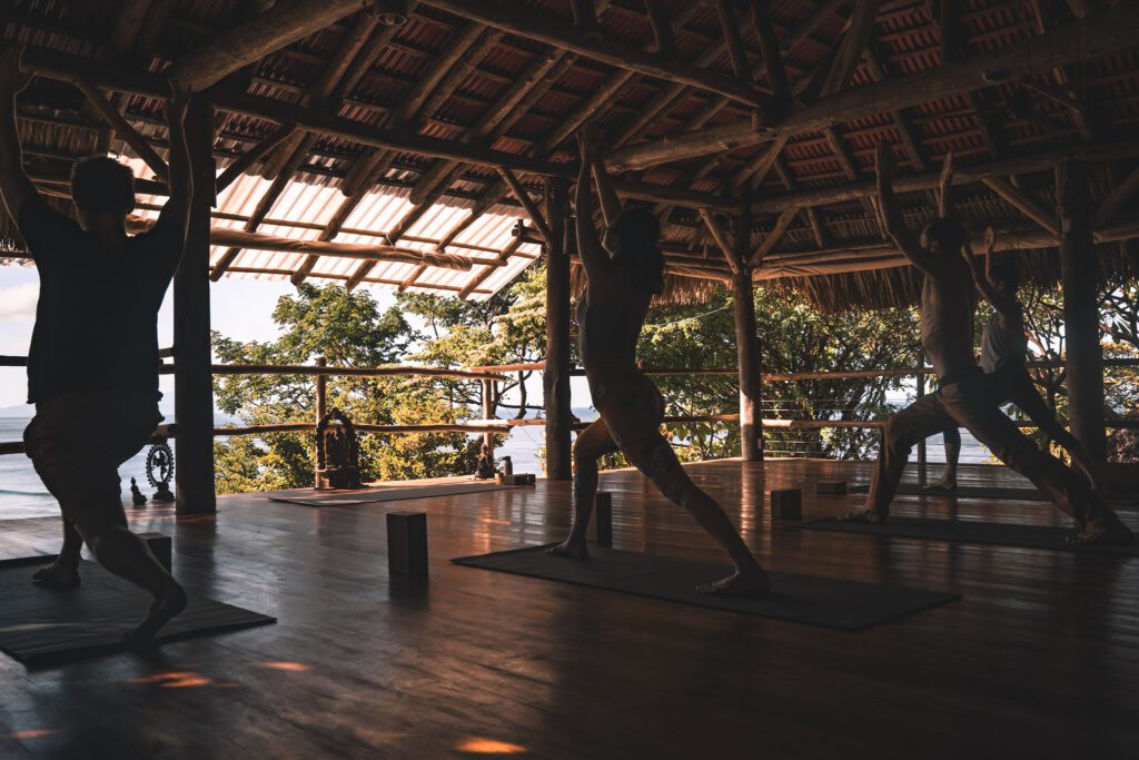 The main shala is located directly above the dining area with a view that’s hard to beat and fits about 27 mats.